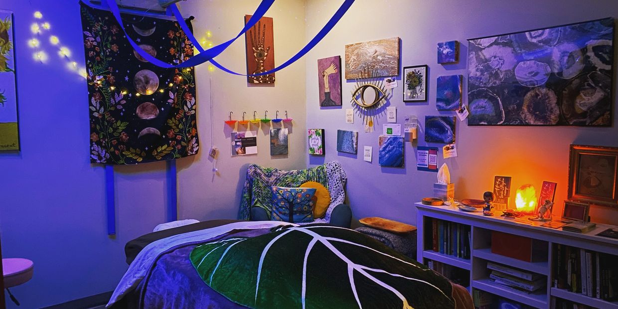 Sarah Littlejohn is a kind and compassionate massage therapist and yoga teacher who wants to encourage self love for everyone. She believes that massage bodywork is essential for a happy body and mind. She also believes in the power of the parasympathetic (rest and digest) nervous system. When the body is calm, it can more easily heal and remain healthy. Therapeutic/deep tissue work can be achieved in her massage room in a more comfortable way. Sarah specializes in Medicupping and barefoot massage. Both of those modalities approach tissue in a way that is more soothing to the nervous system. Massage should never be very painful. A massage with Sarah is a mindful meditation experience. Her yoga studio is an inclusive space for all bodies, shapes, sizes and abilities. Sarah expresses that poses aren’t here for us to find a way to fit into. Asana/poses are here for our bodies in whatever shape or expression they naturally